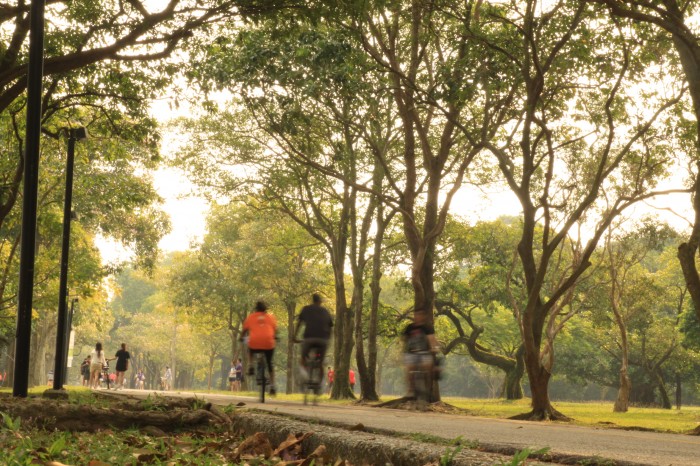Placed the camera on the floor (since I didn’t bring any tripod) and tried to get some motion blur of the cyclists by longer shutter speeds.