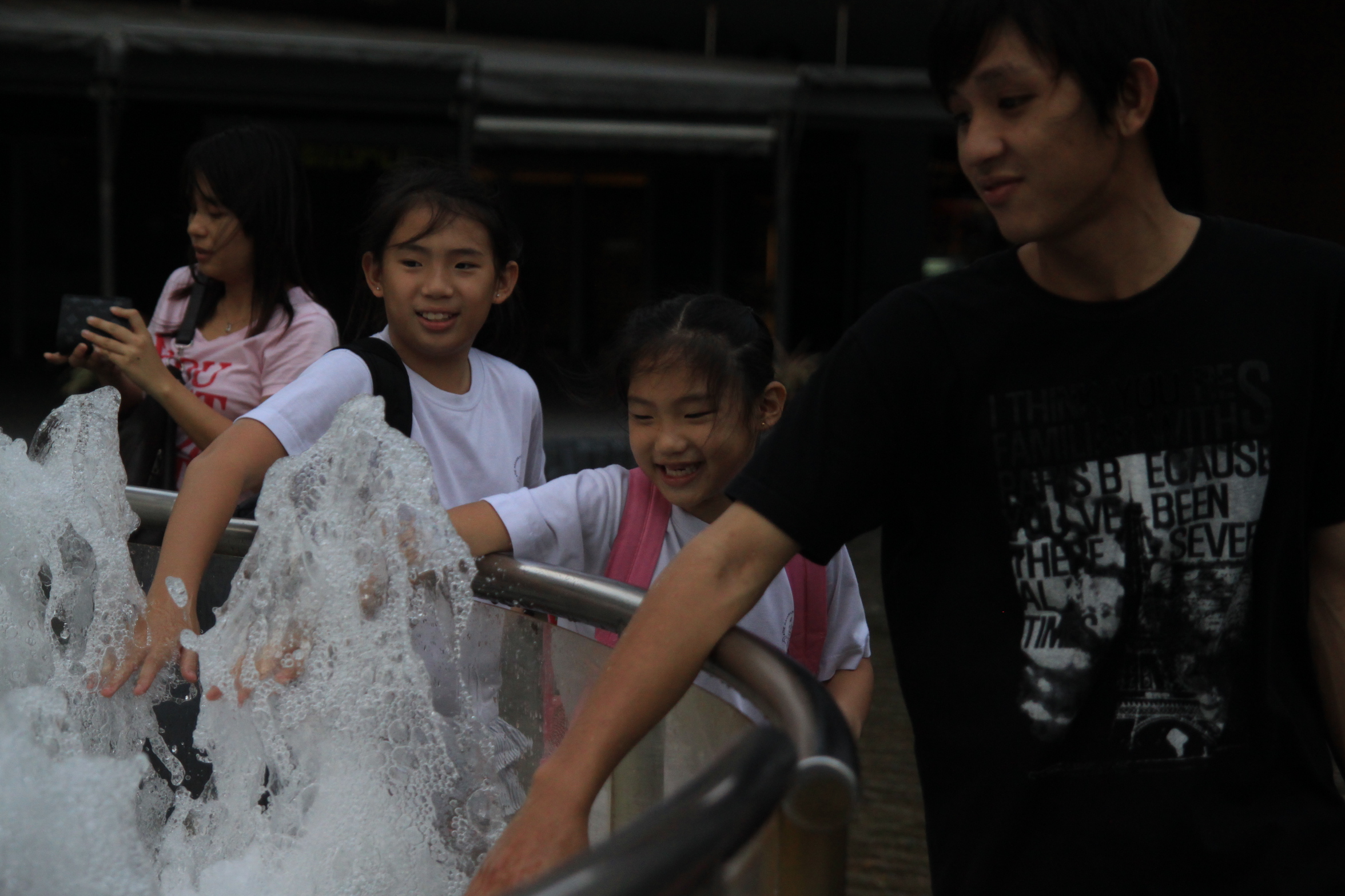 I was at Suntec City and saw these people walking around the fountain, and I tried to capture this ritual of touching the water. It was a little difficult as people were walking around and round and there was not much space for me to stand. Also, it was hard to choose whether to just capture the hands, or also with the people’s facial expressions. But I like how the fast shutter makes the water look like crystal ice.