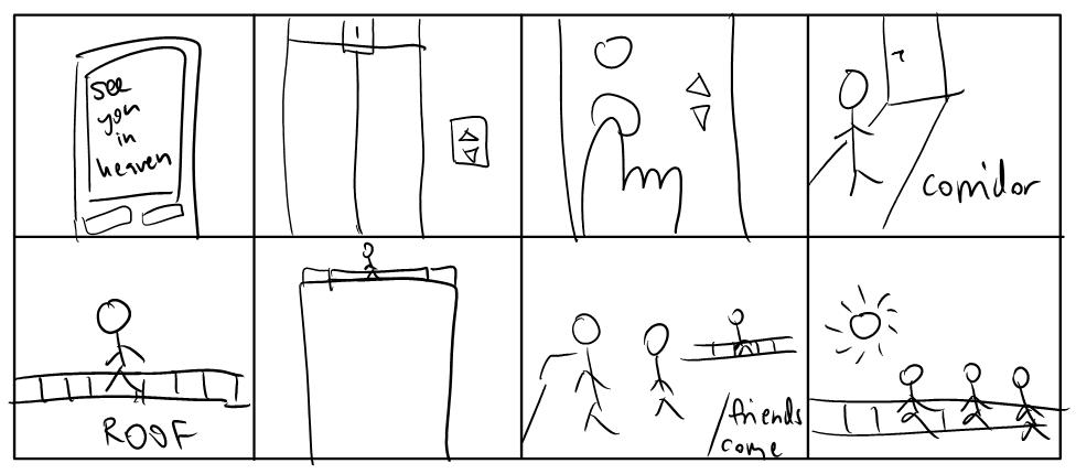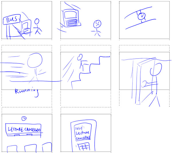 Meng Hui and I decided to redo our picture story since feedback was that suicide stories are quite cliche. So we decided to do a story based in NUS. Here’s a sketch of the storyboard:
