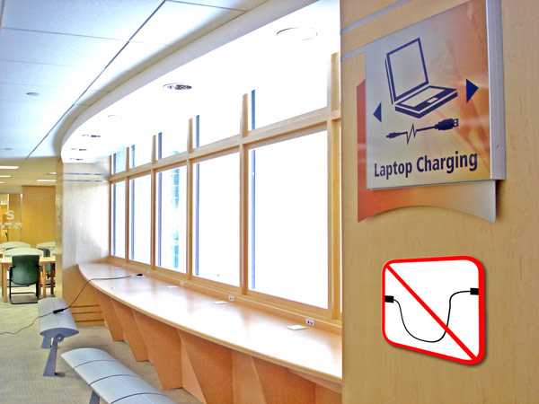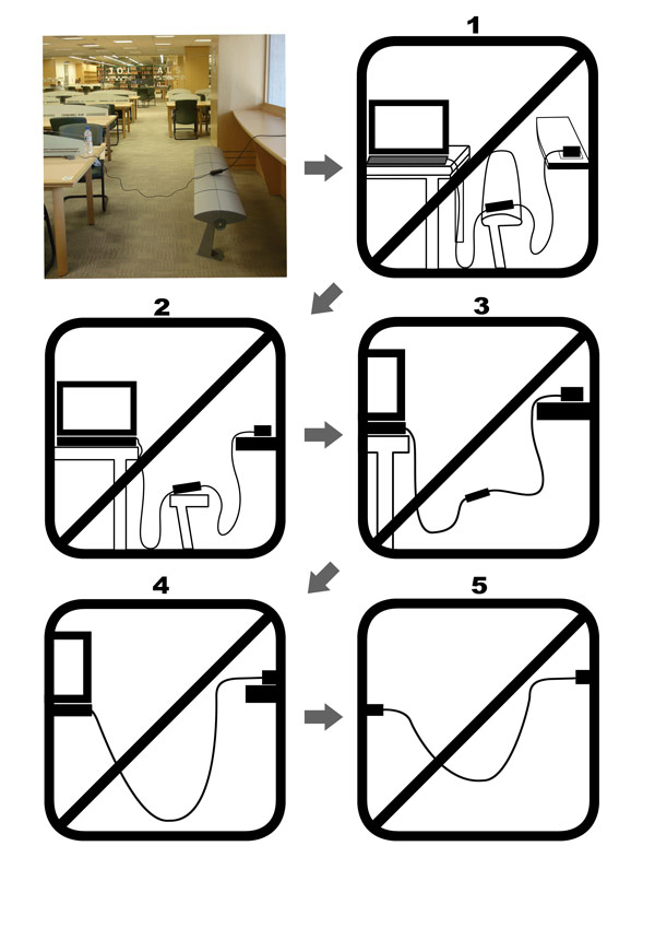 My sign should be indexical and imperative, as the line symbolises a dangling cable and influences the receiver not to leave his/her cables dangling. And here’s the proposed location of the sign, on one of the pillars of the library: